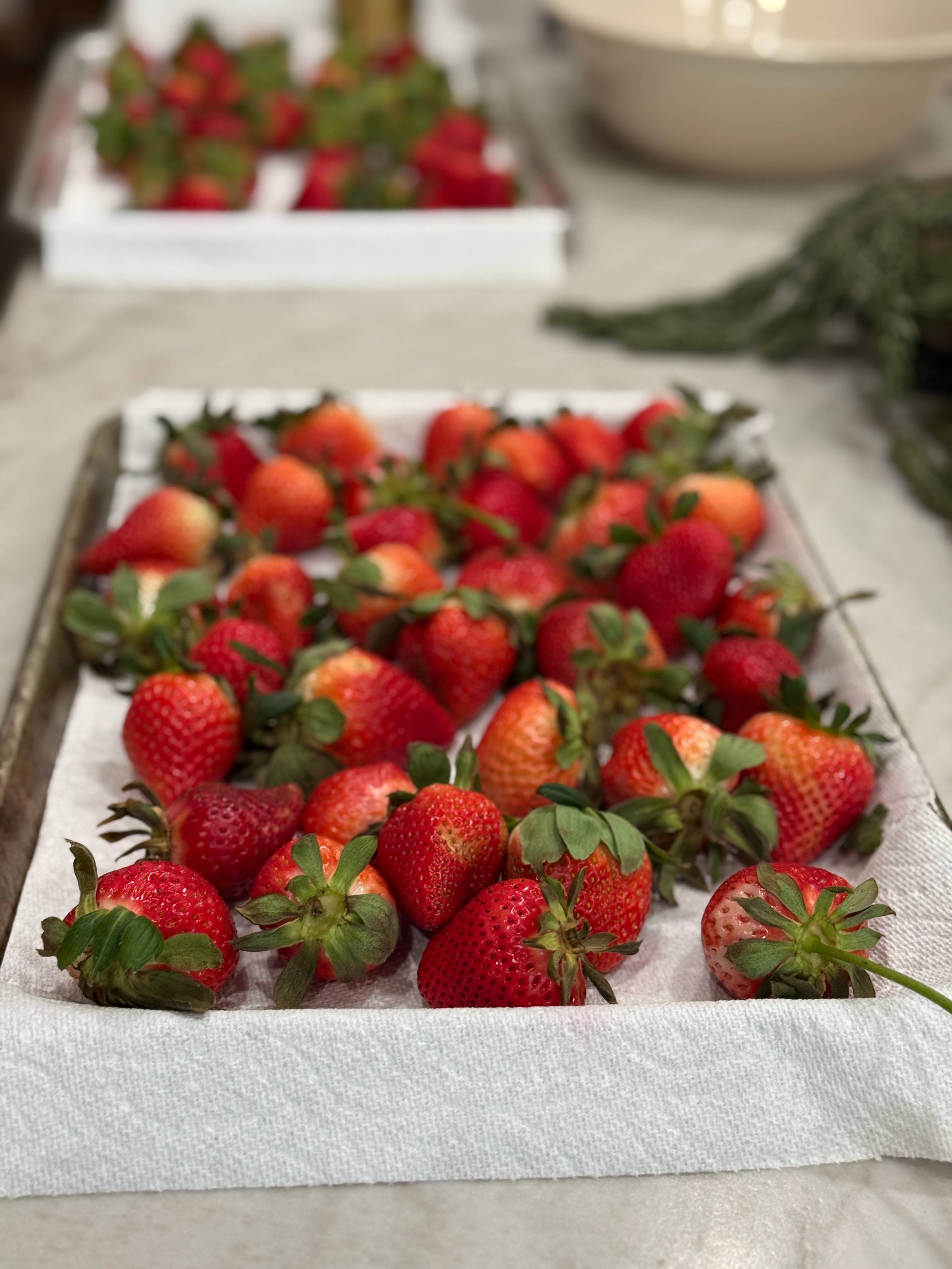 Wash and dry your strawberries completely using the method above.