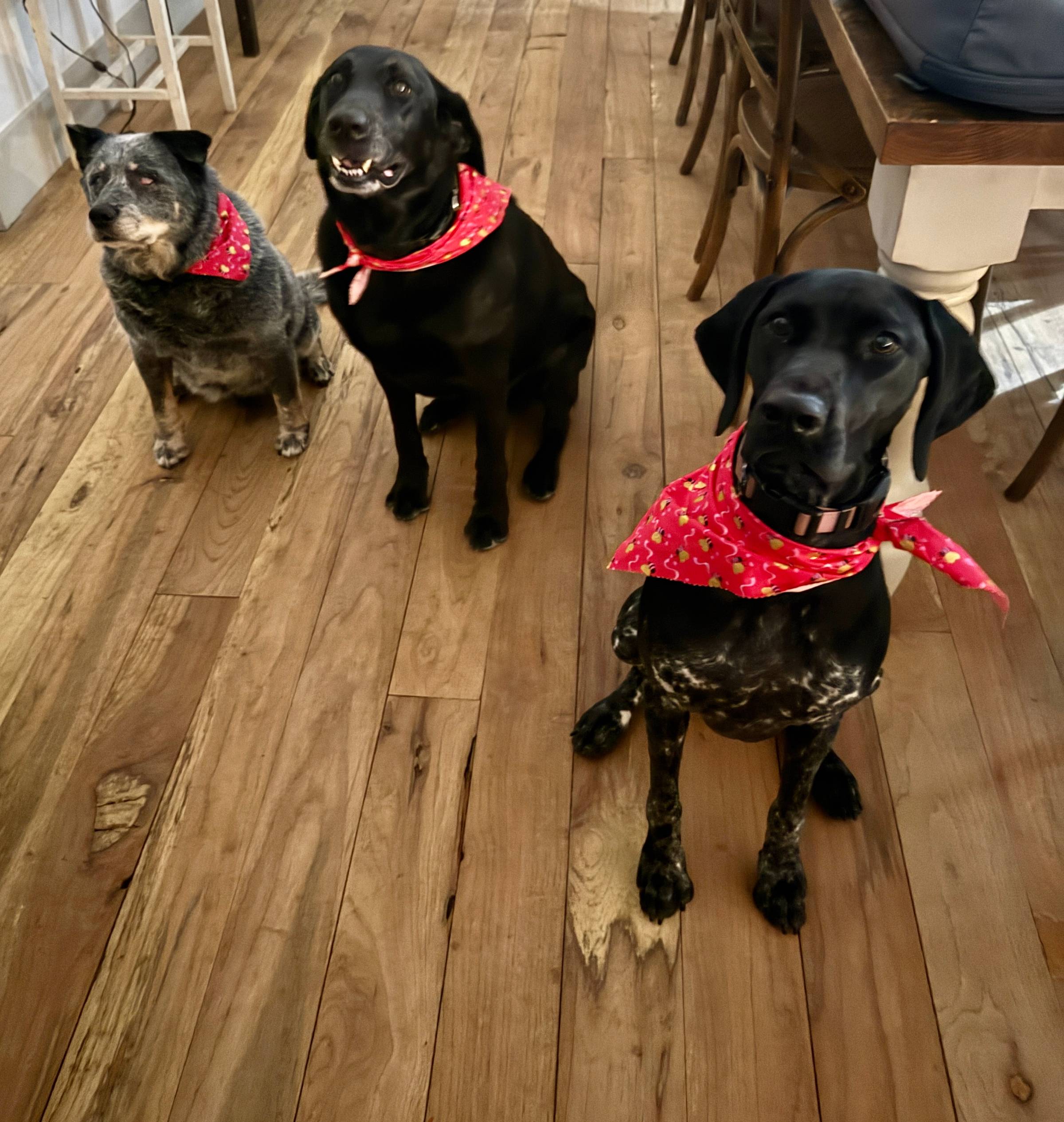 My sweet doggies just got groomed. From left to right, Boone (Australian Cattle Dog, almost 15), Duke (Black Lab, 12) and Dakota (German Shorthaired Pointer, almost 2). They are so loved! After this pose, they all got a treat haha!