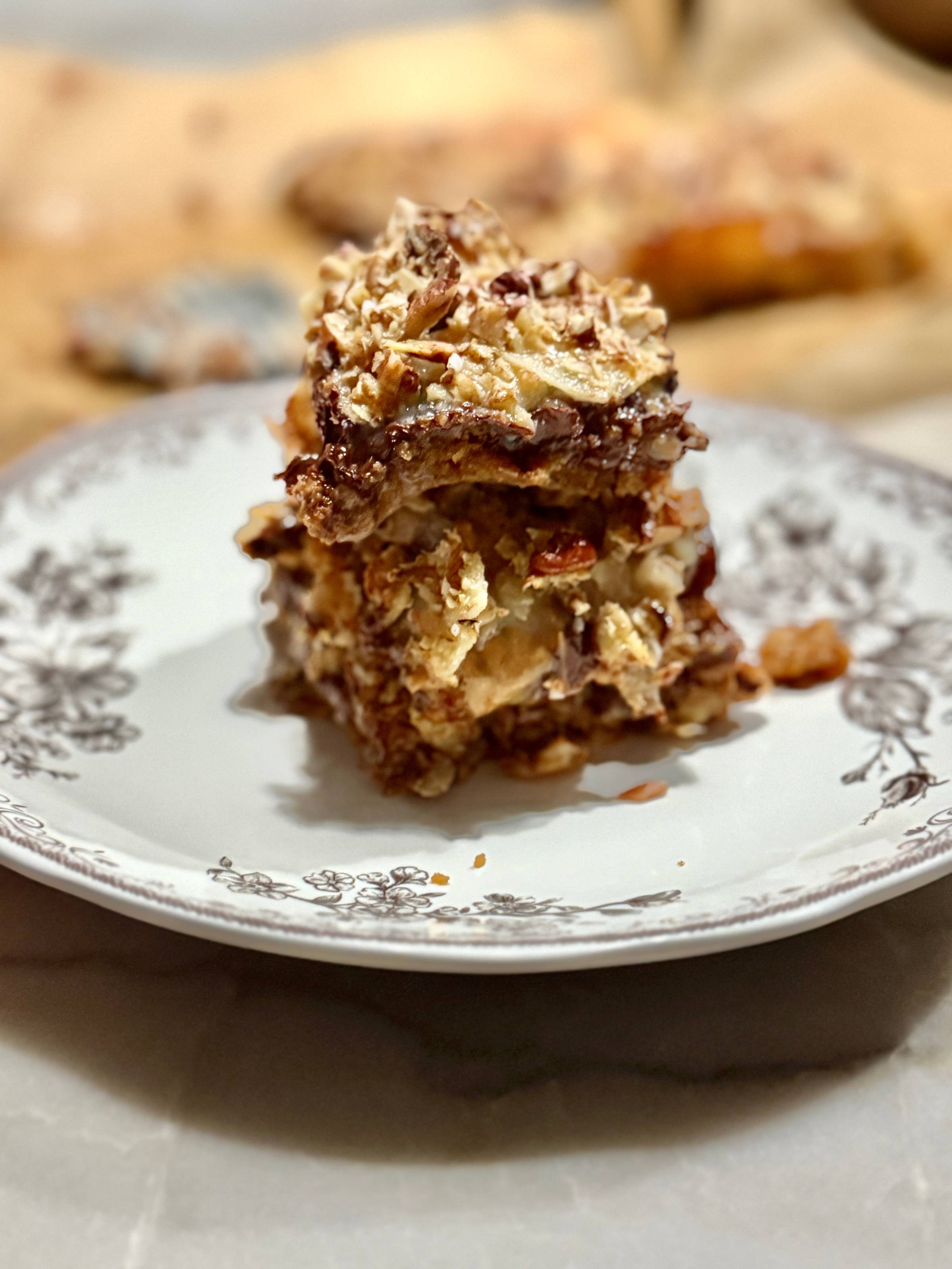 I have a classic nostalgia Christmas treat for you. My mom made these Magic Cookie Bars every year when I was little. I had no idea what was in them. All I knew was they were delicious! Have you heard of them? Well, I’m brining them back and carrying on my mom’s tradition.