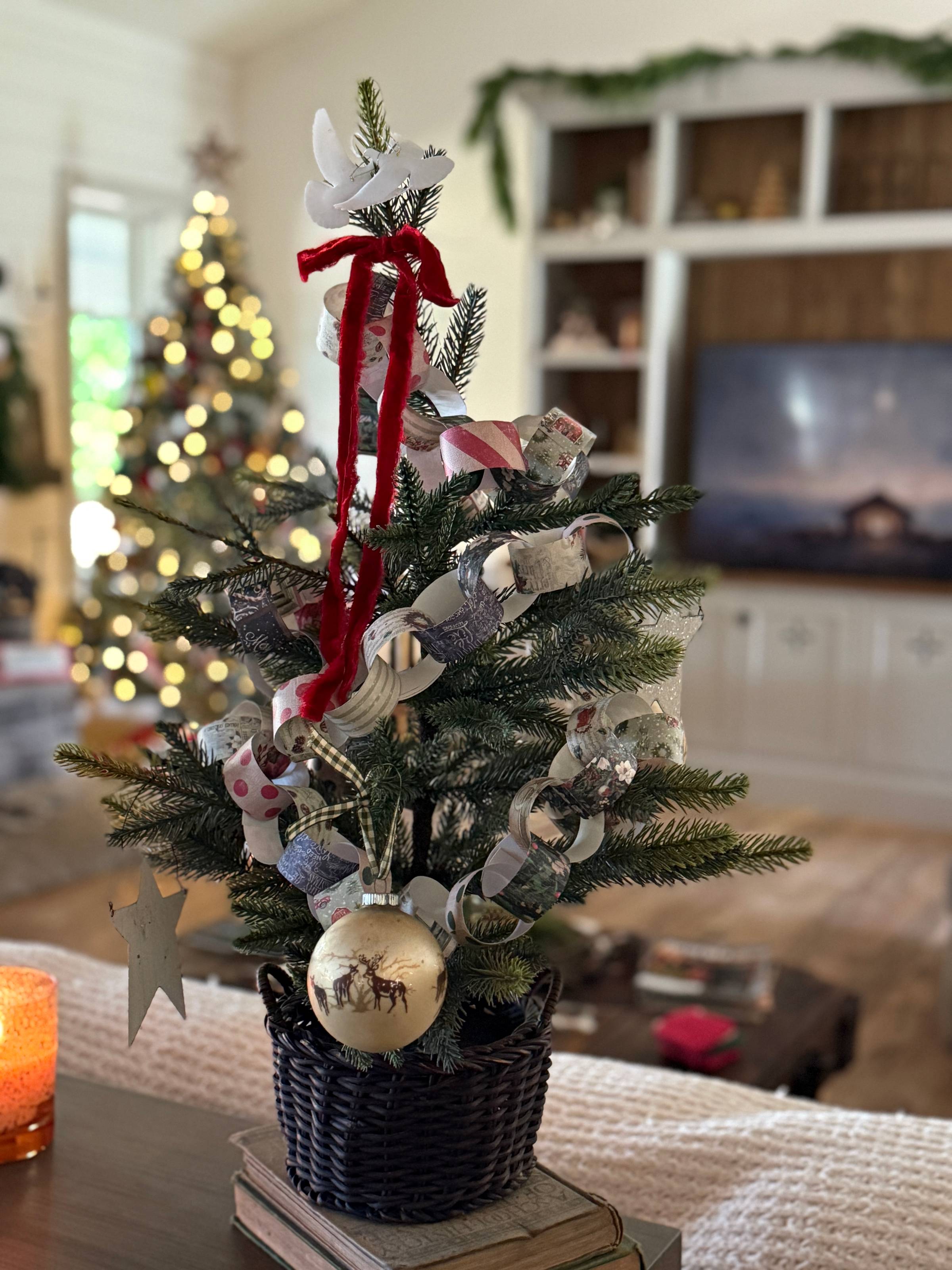 I just realized the meaning of the two turtle doves is all about Peace, Love and Friendship. I found this set of adorable doves and hung them at the top of this cute little tree.